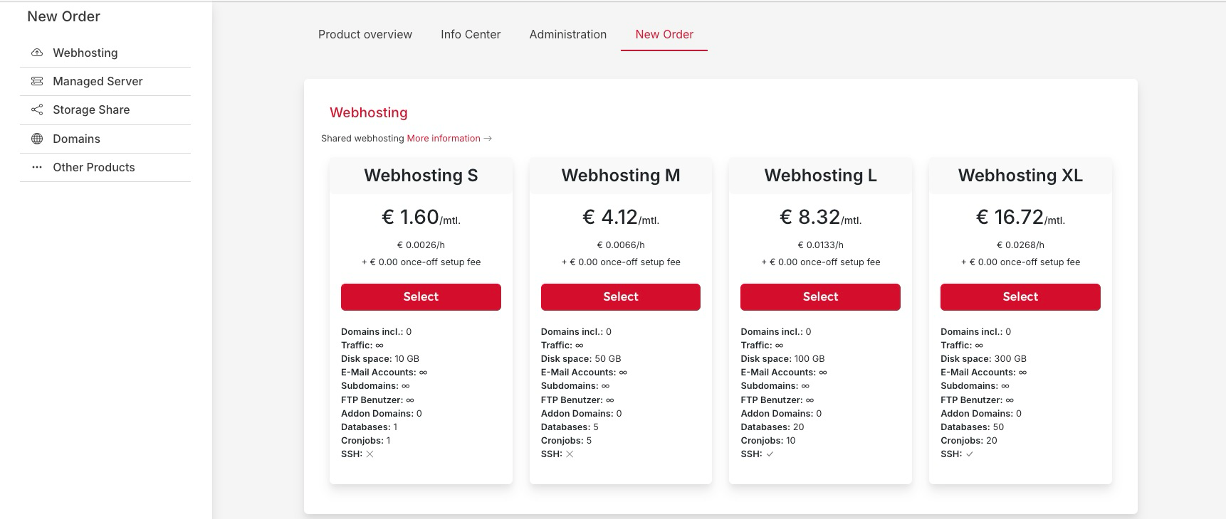 As an existing client, you can place a new order from the Konsole section, the New Order tab, and then select your desired plan.